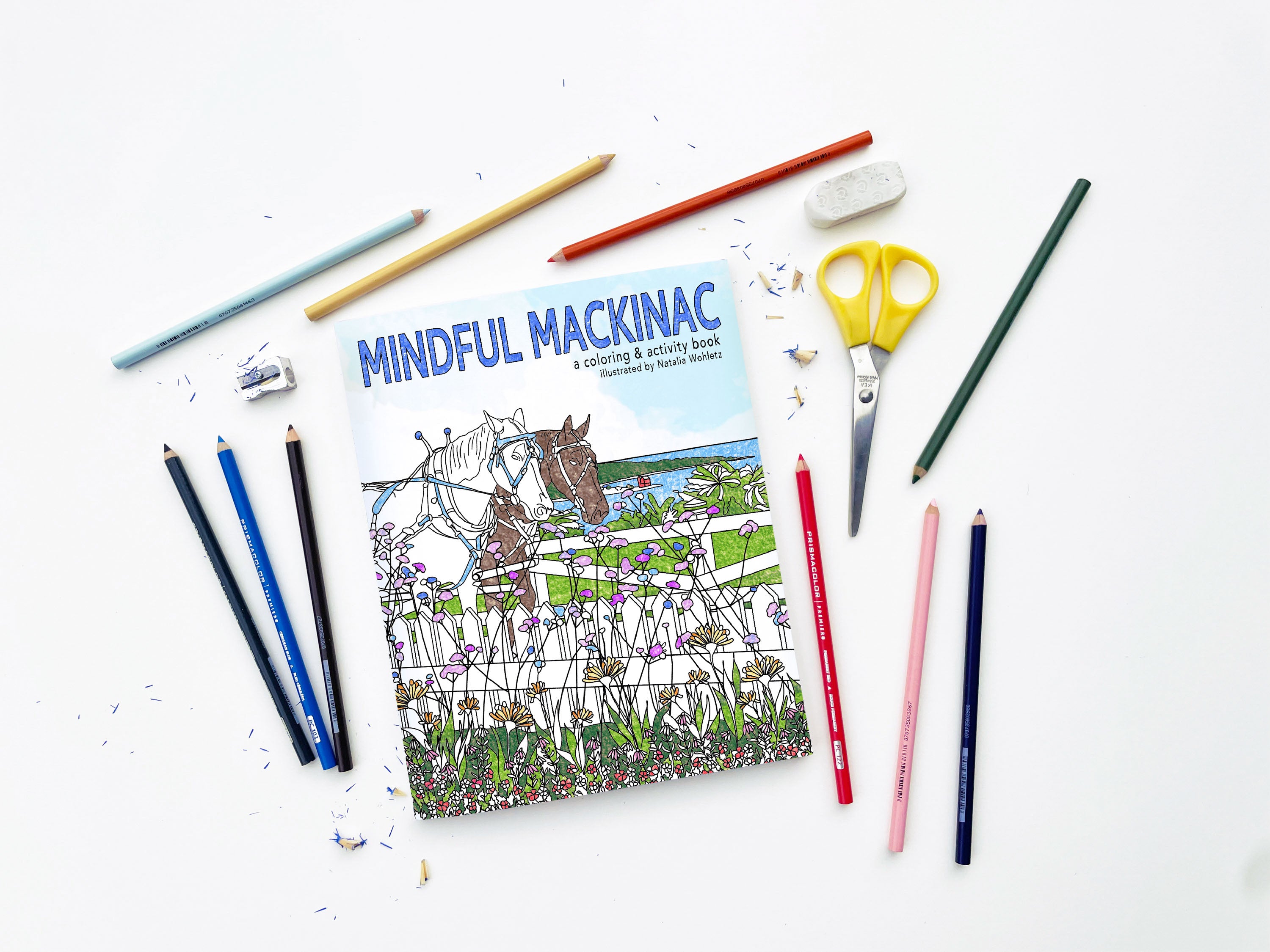 Embark on a colorful adventure around Mackinac! This unique book features 33 coloring pages, along with intriguing facts, word searches, and even a crossword puzzle. And don't miss the photo scavenger hunt, leading you on a quest to discover iconic island spots and hidden treasures.