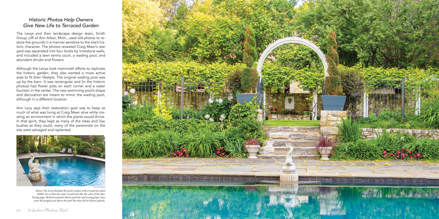 The book’s photographs provide inspiration for creating an inviting, relaxing outdoor space. They were taken by Jennifer Wohletz, of Mackinac Island and Milford, Mich., along with a few contributions from local photographers and the Mackinac State Historic Parks collection.
